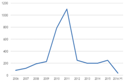 圖1全毬(qiu)MOCVD機檯纍計安裝量 數據來源:咊訊理財客
